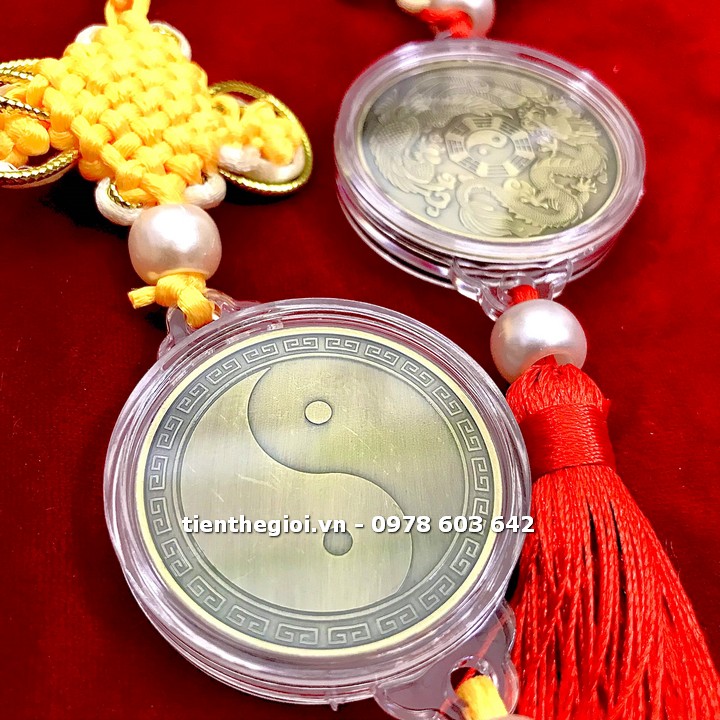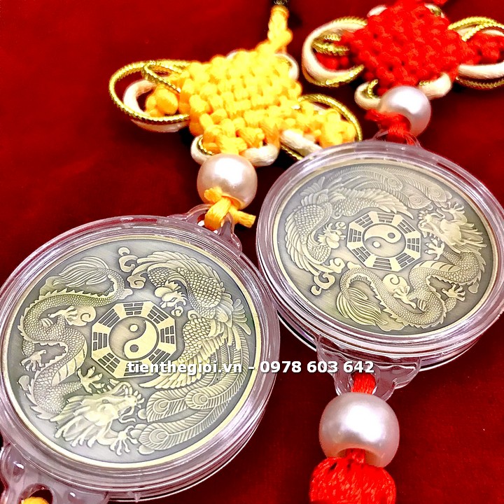 Tên sản phẩm: Dây treo phong thủy xu Long Phụng Bát Quái Âm Dương