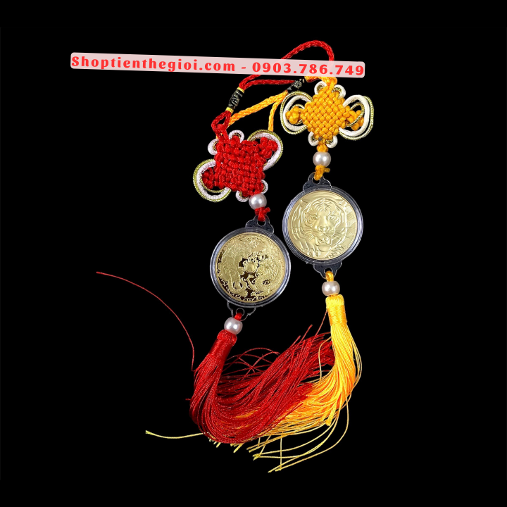 Đóng gói sản phẩm: 1 x Dây Treo Xu Lưu Niệm Long Hổ Tranh Châu.