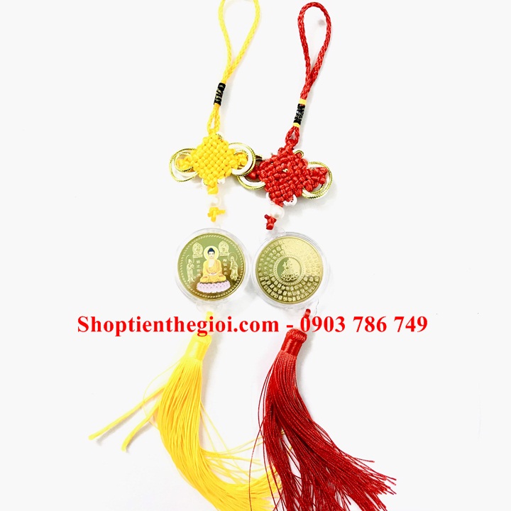 - Đặc điểm nổi bật : Dây treo được kết nút bình an cùng ngọc trai tạo một cảm giác an yên cho gia đạo khi treo. Ngoài ra, xu được sơn tĩnh điện mạ vàng nên lớp sơn luôn sáng bóng và thu hút.