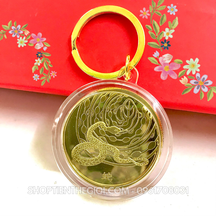 - Được thiết kết độc lạ với sự kết hợp giữa móc khóa trong suốt và Xu Con Rắn Mạ Vàng.