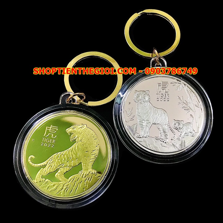 - Móc Khóa Cặp Xu Úc Hình Con Hổ Mạ Vàng Bạc