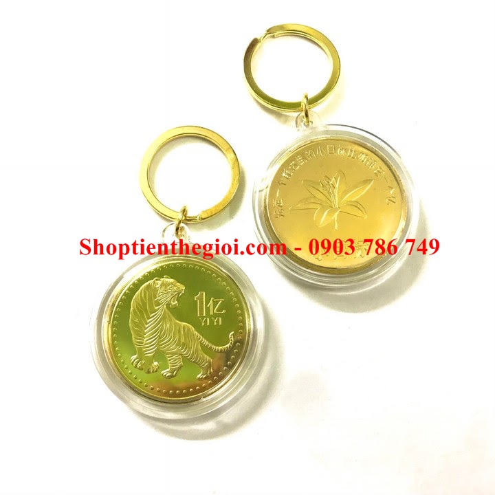 - Đóng gói sản phẩm : x1 Móc khóa Xu con Cọp 1 Yi Trung Quốc Vàng
