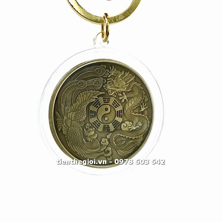 Móc Khoá Xu Long Phụng Bát Quái Âm Dương - SP007659