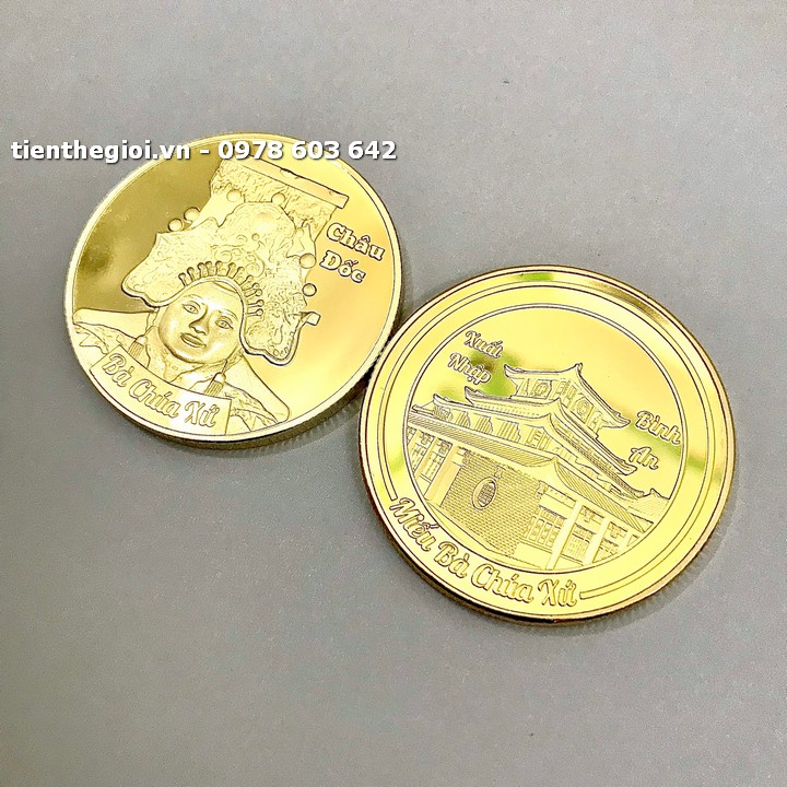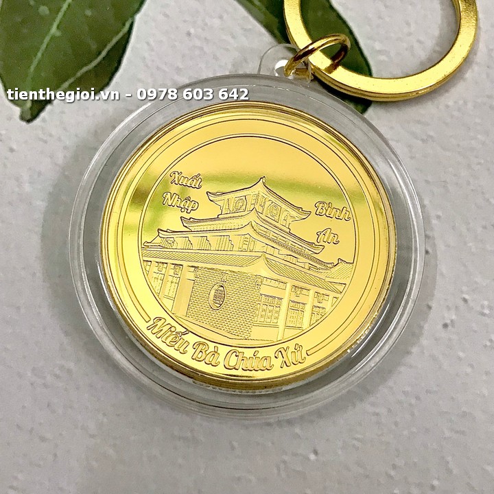 Tên sản phẩm: Móc khóa xu lưu niệm Bà Chúa Xứ Châu Đốc mạ vàng