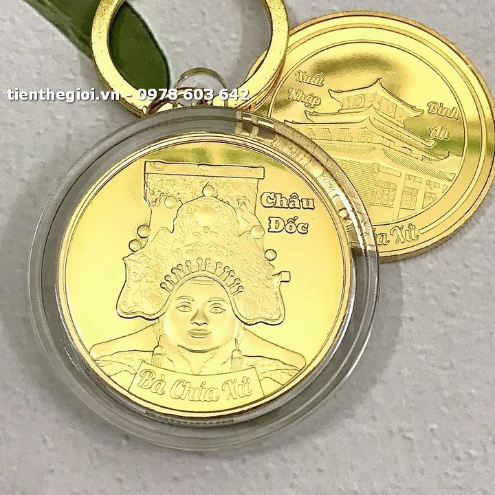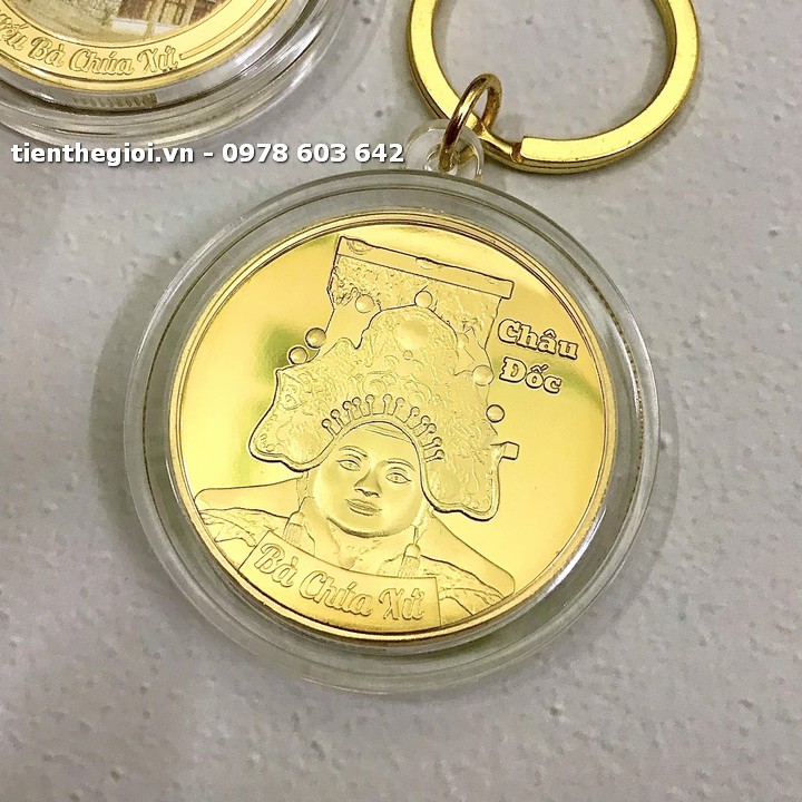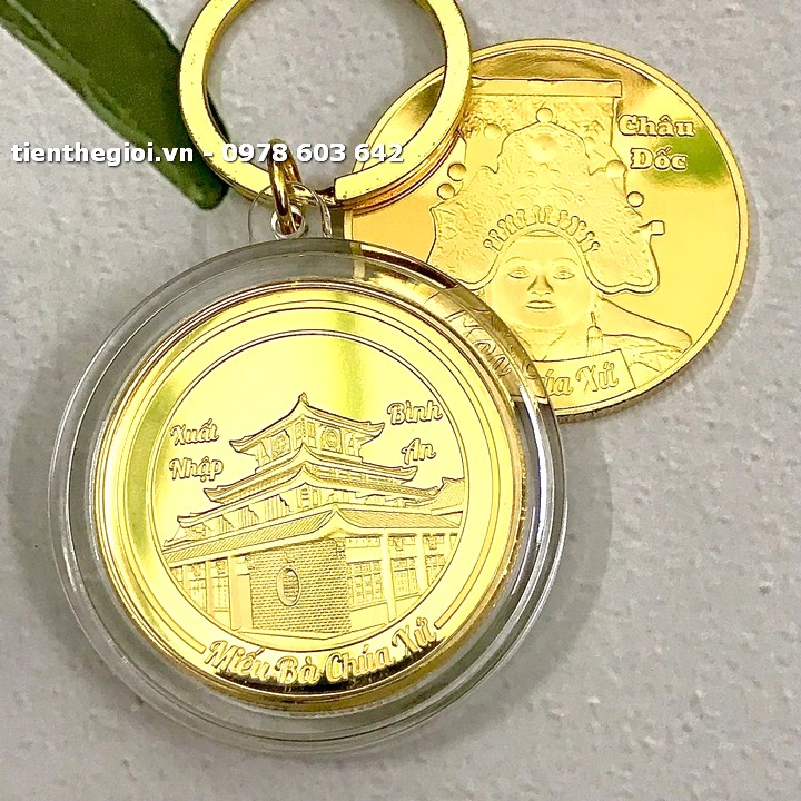 Móc khóa xu lưu niệm Bà Chúa Xứ Châu Đốc mạ vàng