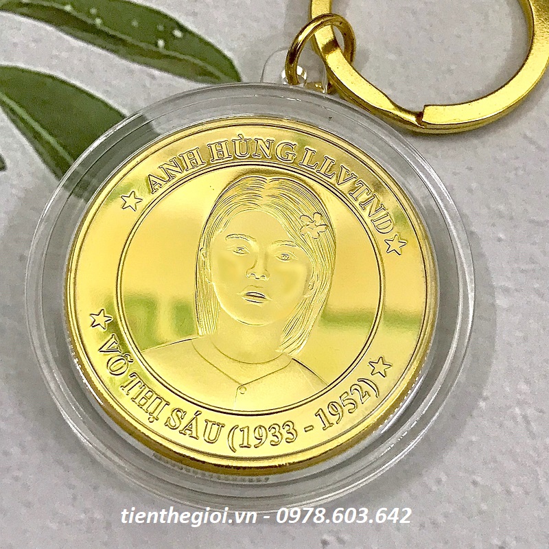 Tên sản phẩm: Móc khóa xu lưu niệm cô Sáu Côn Đảo mạ vàng