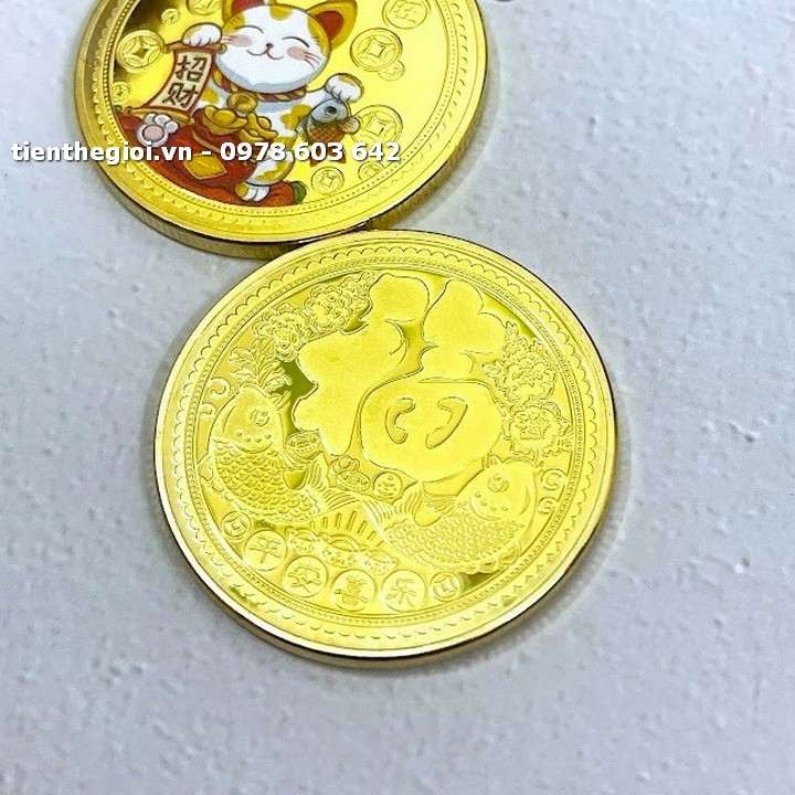 Đặc Điểm Nổi Bật: Móc khóa xu lưu niệm Mèo Thần Tài mạ vàng in màu mang ý nghĩa phong thủy tốt đẹp rất phù hợp làm quà tặng dịp tết hay mừng tân gia ....