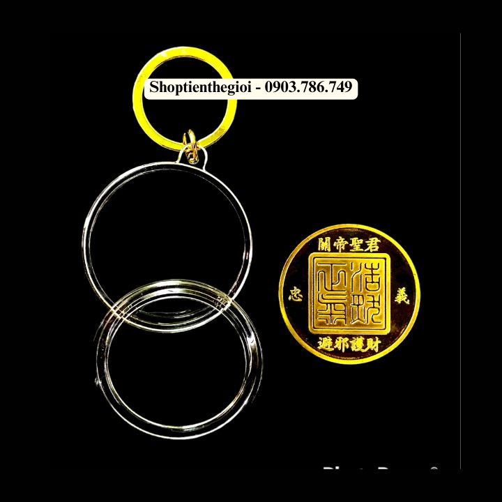 Kích thước : Đường kính xu Quan Công là 4cm. Đường kính móc khóa ngoài là 5cm.