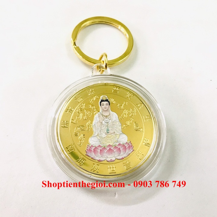 Móc Khóa Xu Quan Âm Vàng In Màu - SP005204