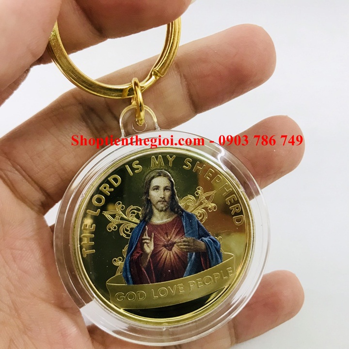 - Đóng gói sản phẩm : x1 Móc khóa xu Thánh Tâm Chúa Gieessu Kito In Màu.