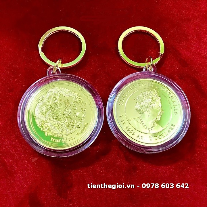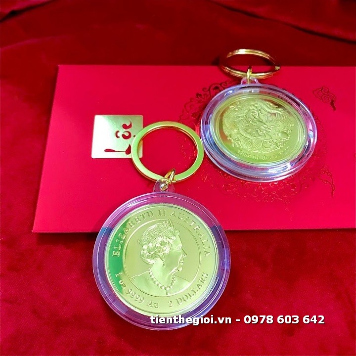 Móc Khóa Xu Úc Hình Con Rồng Mạ Vàng
