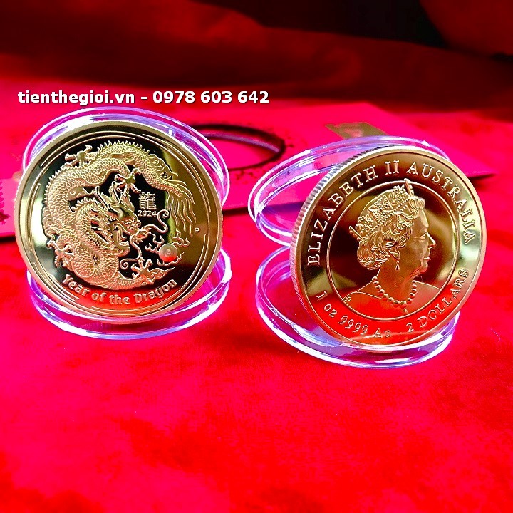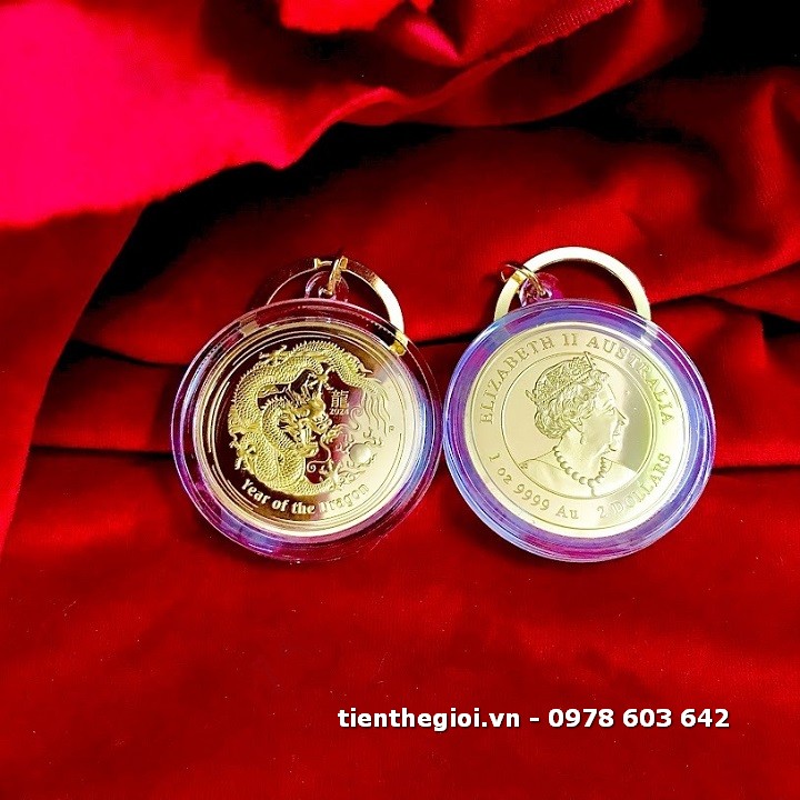 Tên sản phẩm: Móc Khóa Xu Úc Hình Con Rồng Mạ Vàng