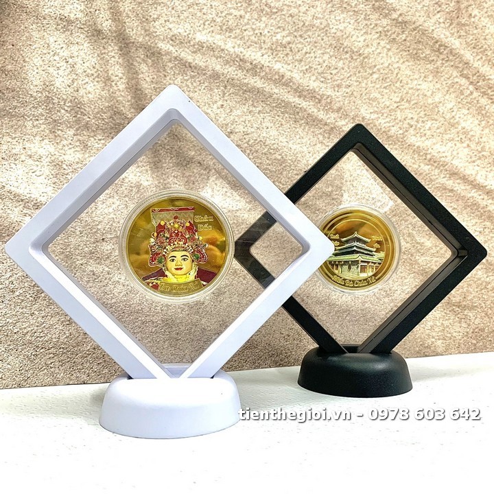 Mô tả sản phẩm: Khung trưng bày xu Bà Chúa Xứ Châu Đốc in màu là một sản phẩm trang trí hiện đại. Với bề mặt khung chất liệu nhựa PE Polyetylen siêu bền và co giãn. Khung bằng nhựa lành tính, dễ bảo quản. "Theo truyền thuyết kể lại, cách đây khoảng 200 năm, người dân địa phương tại Châu Đốc đã phát hiện ra tượng Bà ở trên đỉnh núi Sam và muốn đưa xuống. Tuy nhiên, mấy chục thanh niên cường tráng định khiêng tượng Bà nhưng không được. Sau đó qua miệng bà “cô Đồng” bảo chỉ cần 9 cô gái đồng trinh lên khiêng xuống. Nhưng đến chân núi thì tượng Bà bất ngờ nặng trịch không thể đi nữa. Người dân nghĩ Bà chọn nơi đây để an vị ở đây và đã lập miếu tôn thờ ". Tất cả kết hợp thành một khung trưng bày đơn giản nhưng sang trọng. Rất thích hợp để tặng cho đối tác, doanh nghiệp, gia đình,...