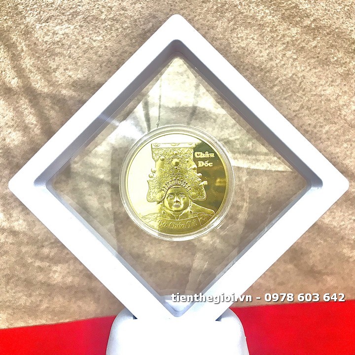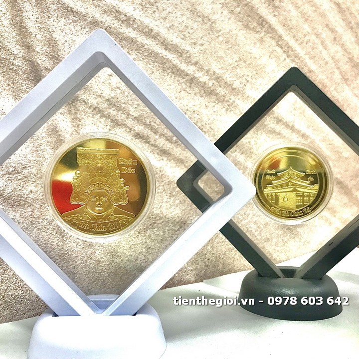 Khung trưng bày xu Bà Chúa Xứ Châu Đốc vàng