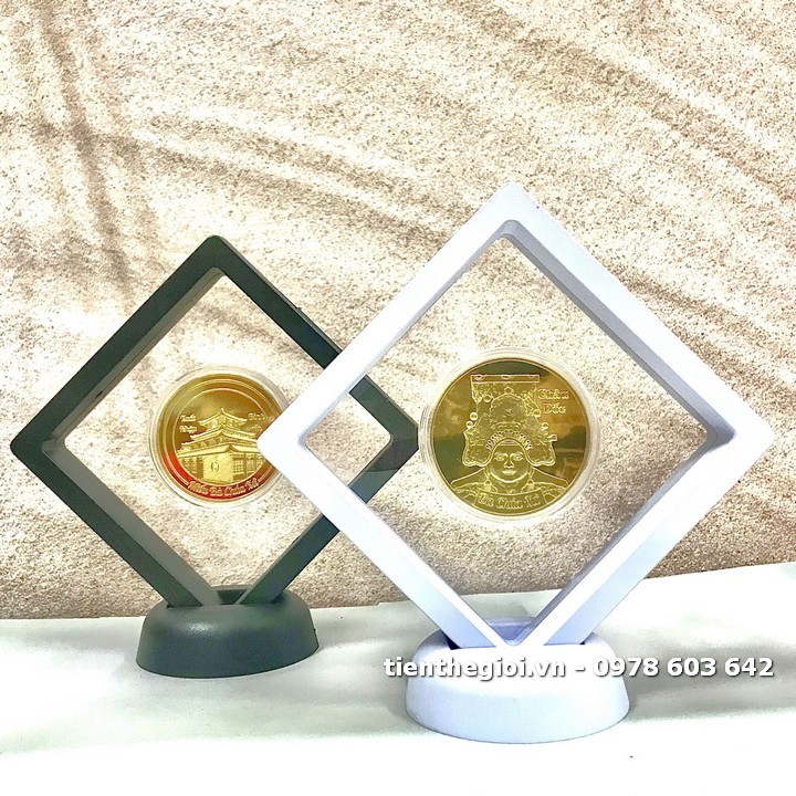 Mô tả sản phẩm: Khung trưng bày xu Bà Chúa Xứ Châu Đốc vàng là một sản phẩm trang trí hiện đại. Với bề mặt khung chất liệu nhựa PE Polyetylen siêu bền và co giãn. Khung bằng nhựa lành tính, dễ bảo quản. "Theo truyền thuyết kể lại, cách đây khoảng 200 năm, người dân địa phương tại Châu Đốc đã phát hiện ra tượng Bà ở trên đỉnh núi Sam và muốn đưa xuống. Tuy nhiên, mấy chục thanh niên cường tráng định khiêng tượng Bà nhưng không được. Sau đó qua miệng bà “cô Đồng” bảo chỉ cần 9 cô gái đồng trinh lên khiêng xuống. Nhưng đến chân núi thì tượng Bà bất ngờ nặng trịch không thể đi nữa. Người dân nghĩ Bà chọn nơi đây để an vị ở đây và đã lập miếu tôn thờ ". Tất cả kết hợp thành một khung trưng bày đơn giản nhưng sang trọng. Rất thích hợp để tặng cho đối tác, doanh nghiệp, gia đình,...