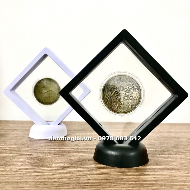 Đóng gói sản phẩm: x1 Khung trưng bày xu Long Phụng Bát Quái Âm Dương