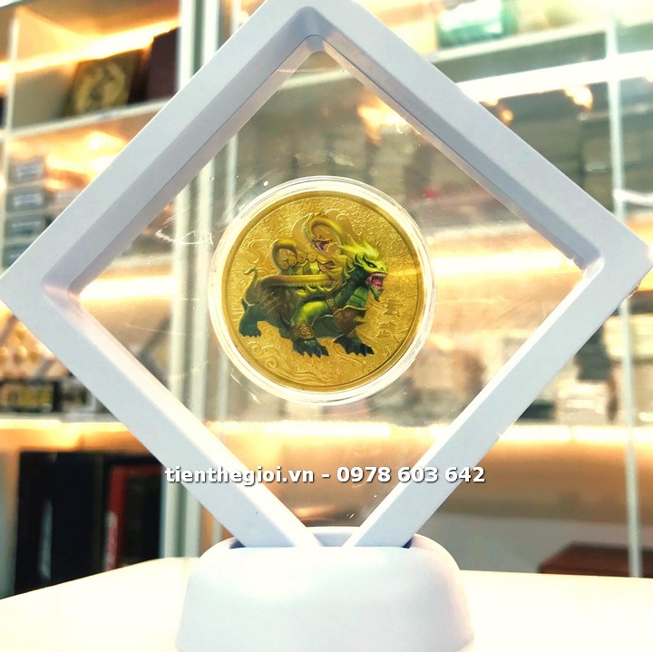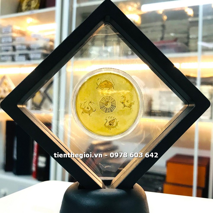 Khung trưng bày xu phong thủy Tứ Tượng Huyền Vũ vàng in màu
