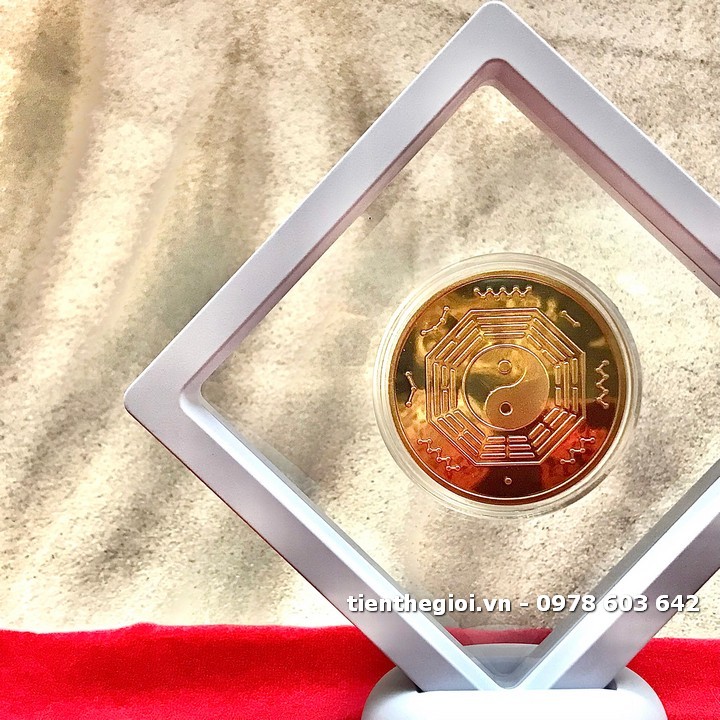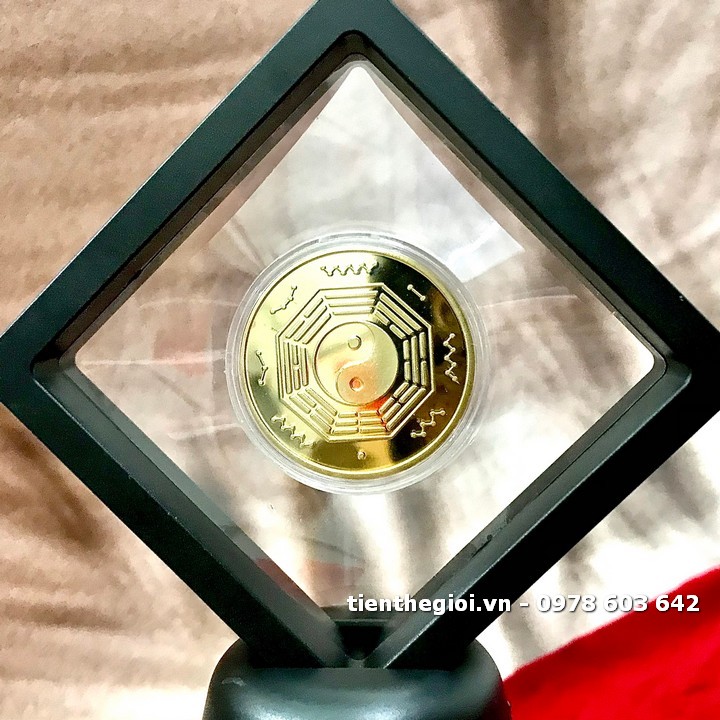 Đóng gói sản phẩm: x1 Khung trưng bày xu Quan Âm bát quái âm dương