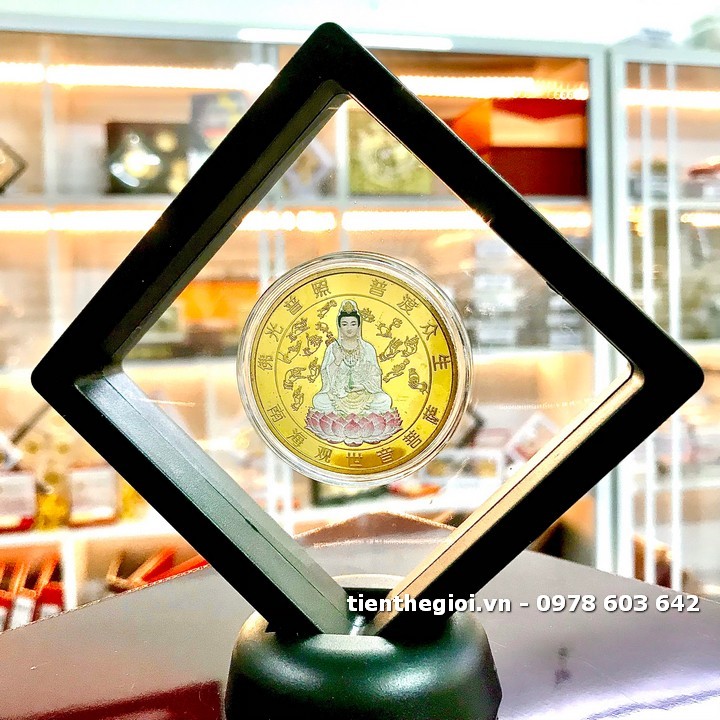 Tên sản phẩm: Khung trưng bày xu Quan Âm vàng in màu