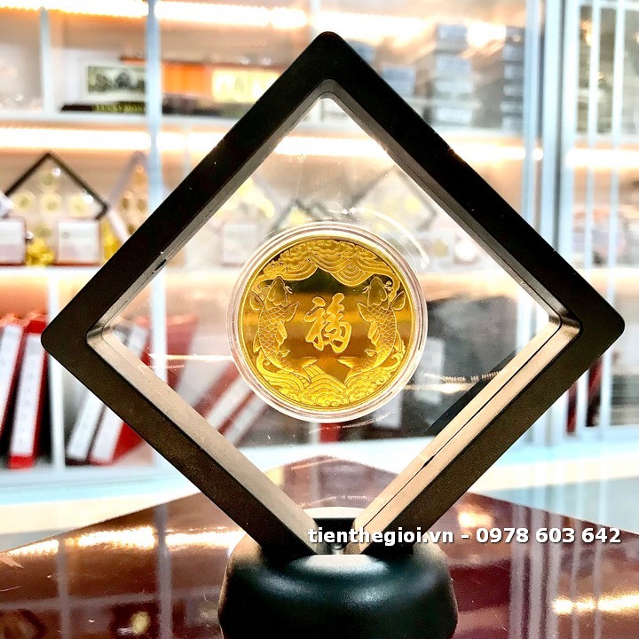 Đóng gói sản phẩm: x1 Khung trưng bày xu Thần Tài mạ vàng Cá Chép