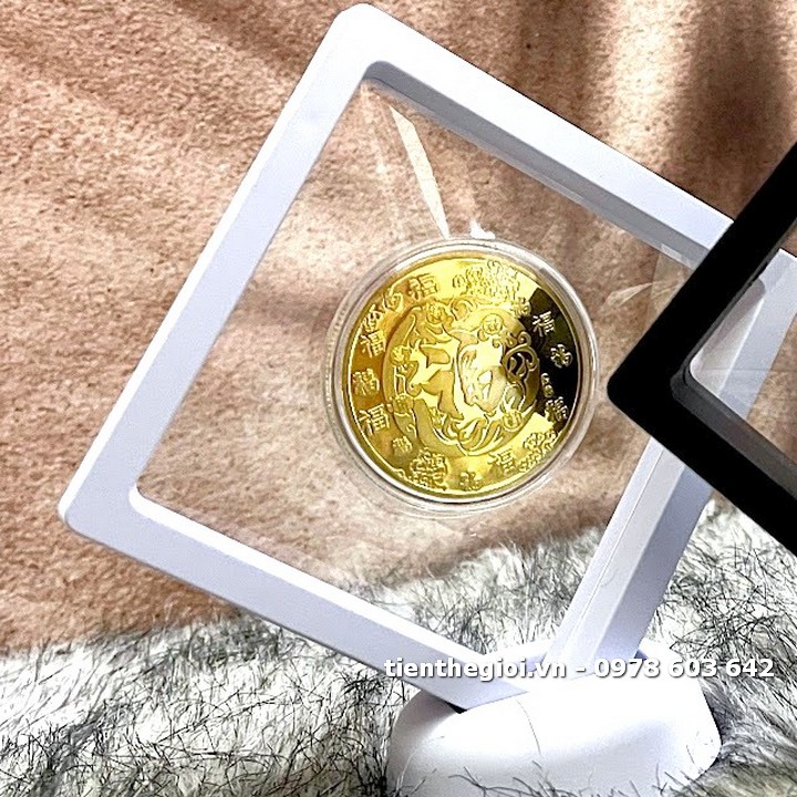 Đóng gói sản phẩm: x1 Khung trưng bày xu Tỳ Hưu mạ vàng in màu