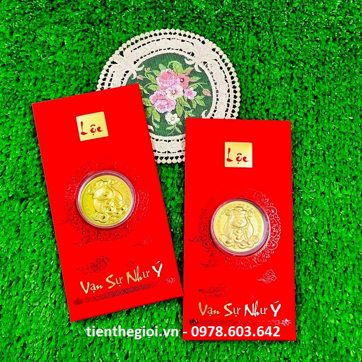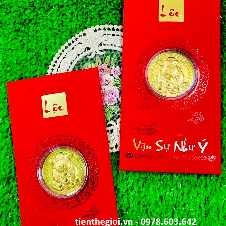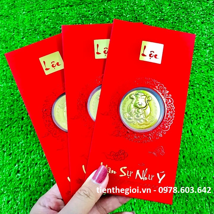 Bao Lì Xì Lộc Đồng Xu Thần Tài Mạ Vàng Cute
