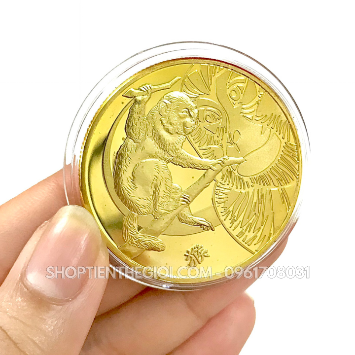 - Điểm nổi bật : Xu con Giáp hình con Khỉ được thiết kế tinh xảo cùng với kĩ thuật công nghệ mới giúp luôn trong tình trạng sáng bóng . Mỗi xu sẽ được tặng kèm 1 ốp hộp nhựa opp bảo quản mặt xu khỏi trầy xước.