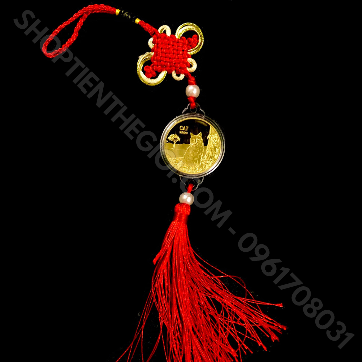- Chất liệu : Dây treo được làm bằng dây dệt còn xu con Mèo được làm từ niken mạ vàng