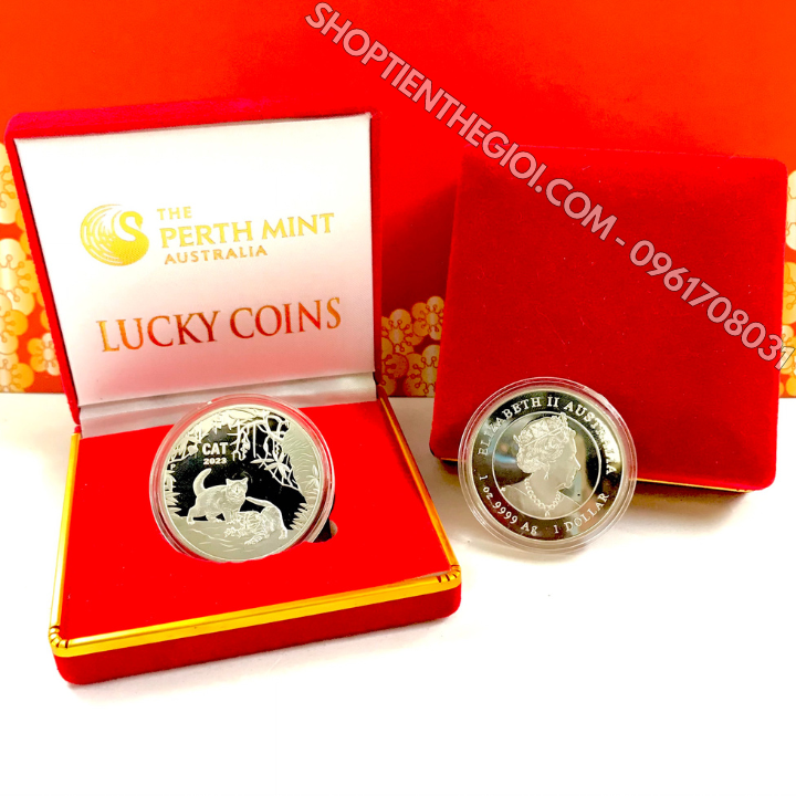 - Xu Úc Hình Con Mèo Mạ Bạc tặng hộp nhung