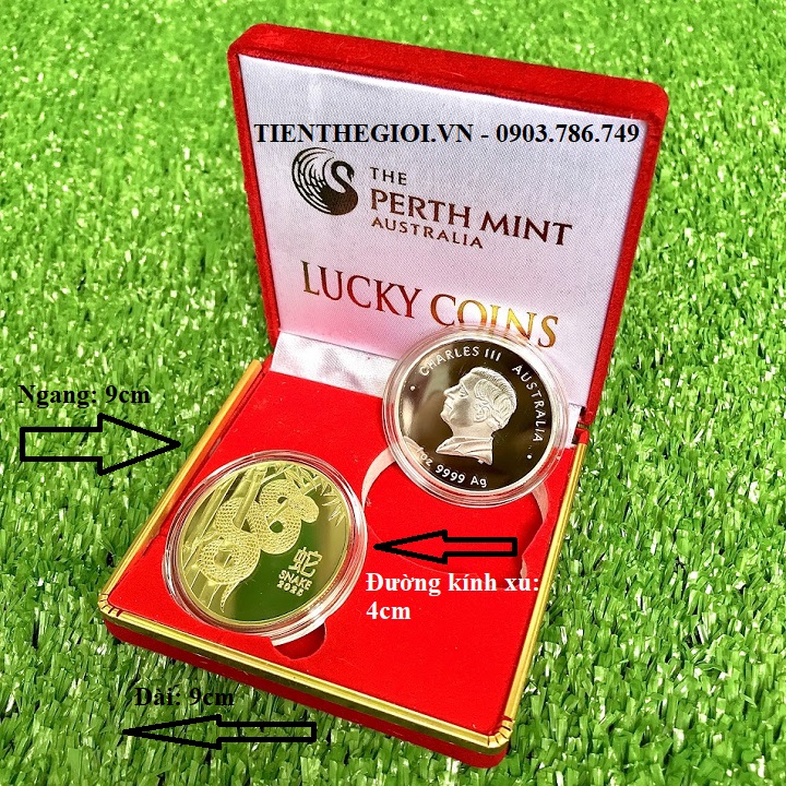 Tên sản phẩm: Cặp Xu Úc Hình Con Rắn Mạ Vàng Bạc Kèm Hộp Nhung