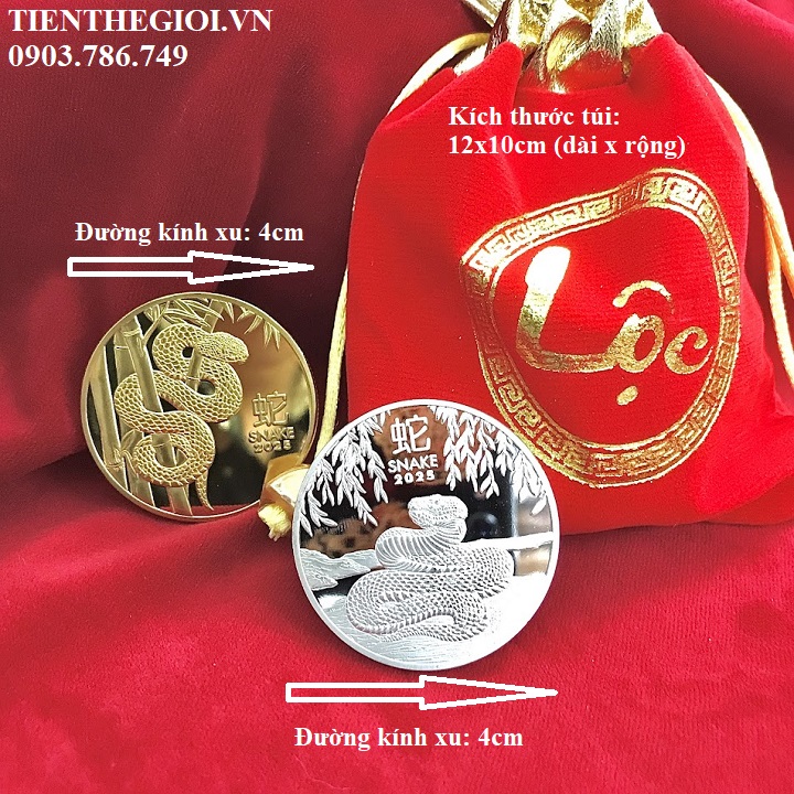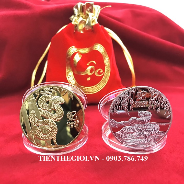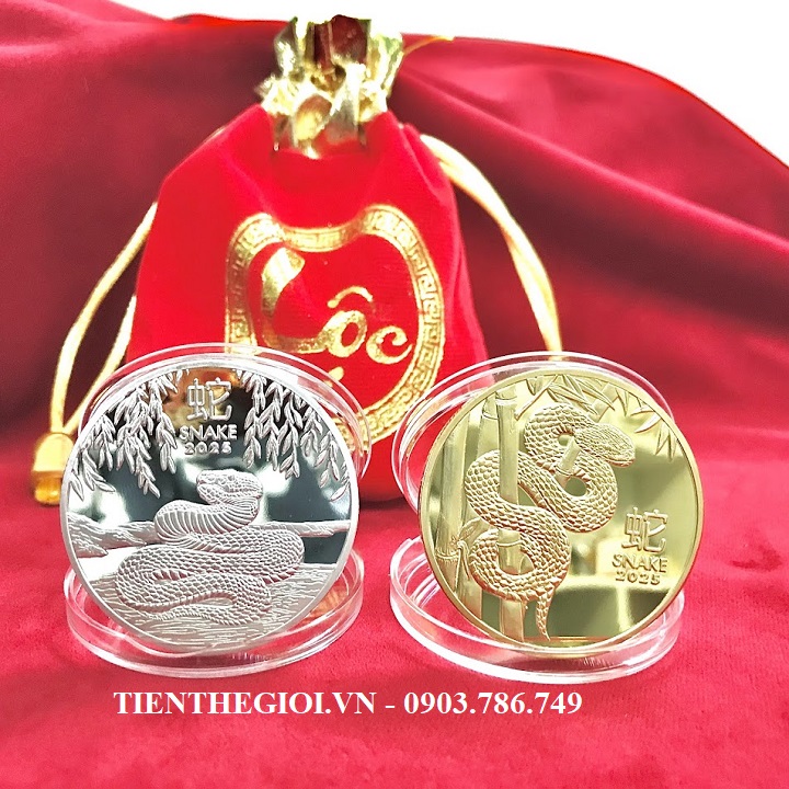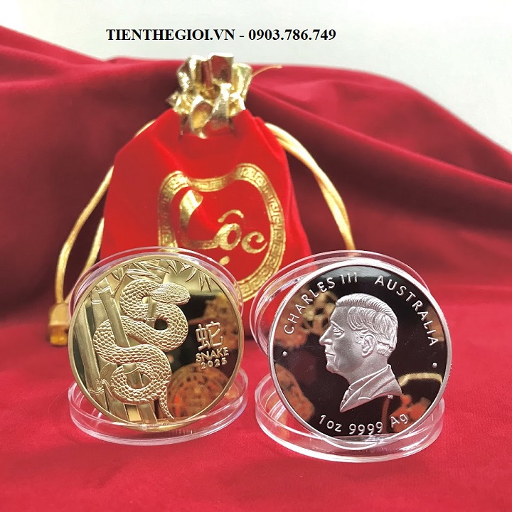 Từ khóa: Xu Con Rắn Vàng Bạc Úc xu con rắn Úc, xu hình con rắn, Vật phẩm phong thủy, tiền lì xì tết 2025, tiền hình con rắn