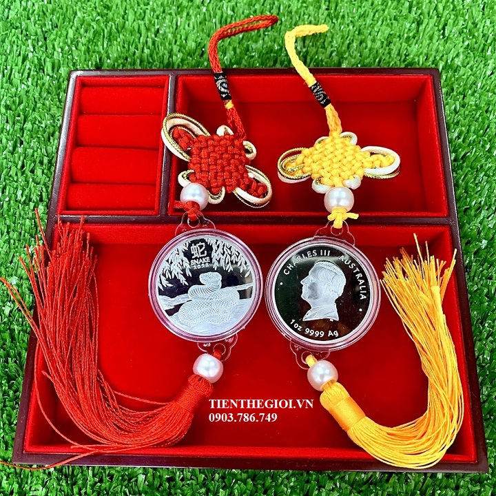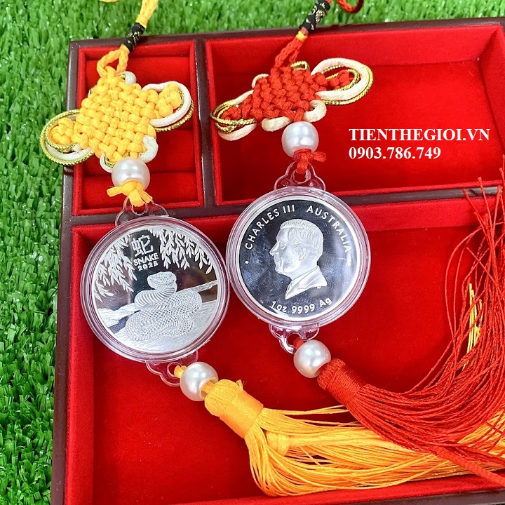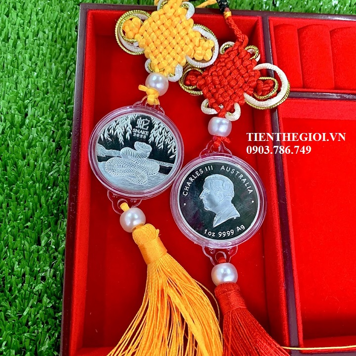 Xu Con Rắn Vàng Bạc Úc, dây treo xu con Rắn, xu con rắn Úc, xu hình con rắn, Vật phẩm phong thủy, tiền lì xì tết 2025, tiền hình con rắn, Xu Con Rắn Bạc