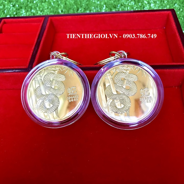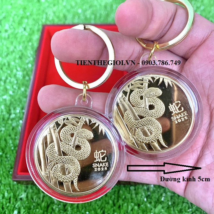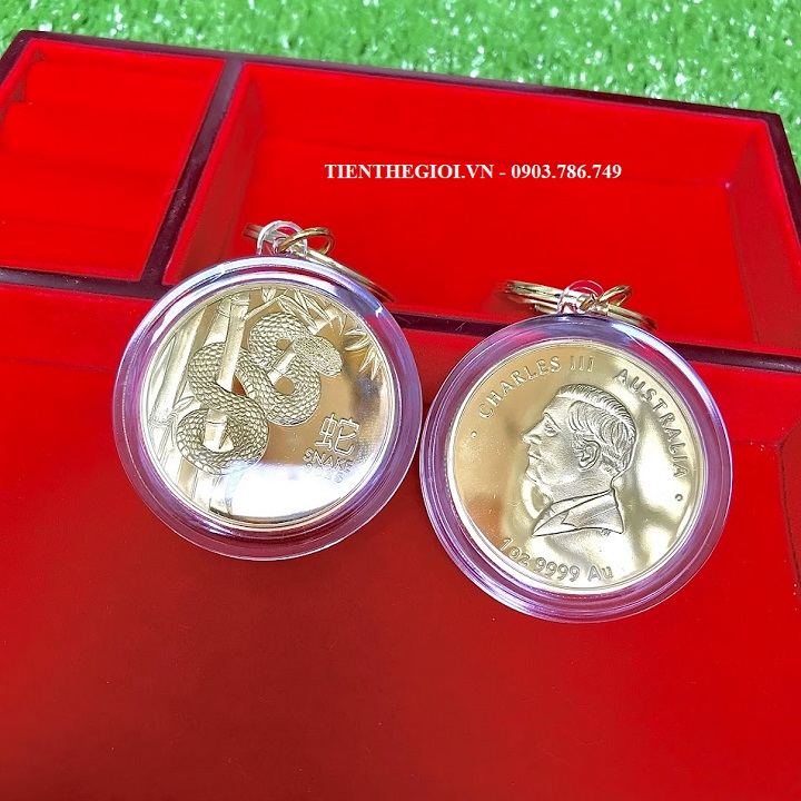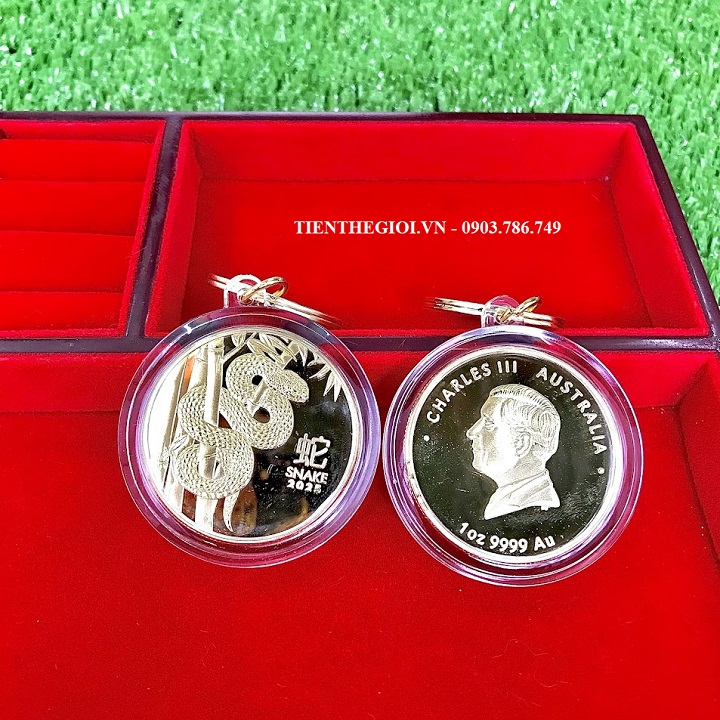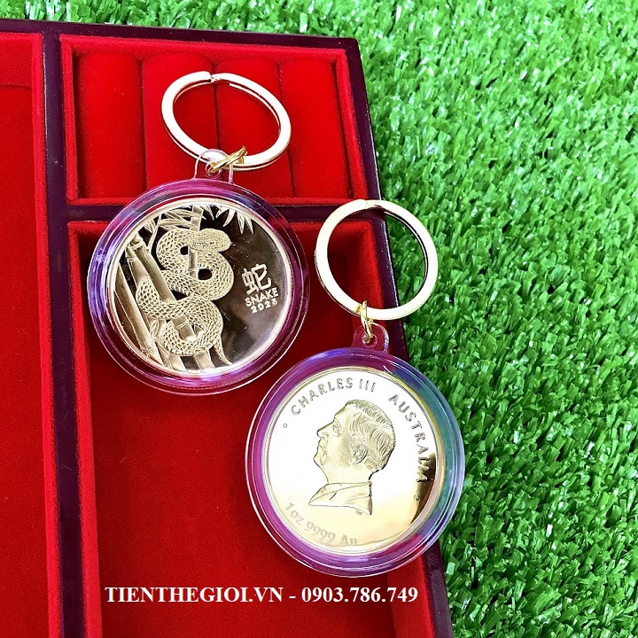 Móc khóa xu con rắn mạ vàng, Xu con rắn móc khóa, Vật Phẩm Phong Thủy, Quà tặng tết, xu úc hình con rắn, xu úc Rắn vàng, tiền lì xì tết 2025, tiền hình con rắn
