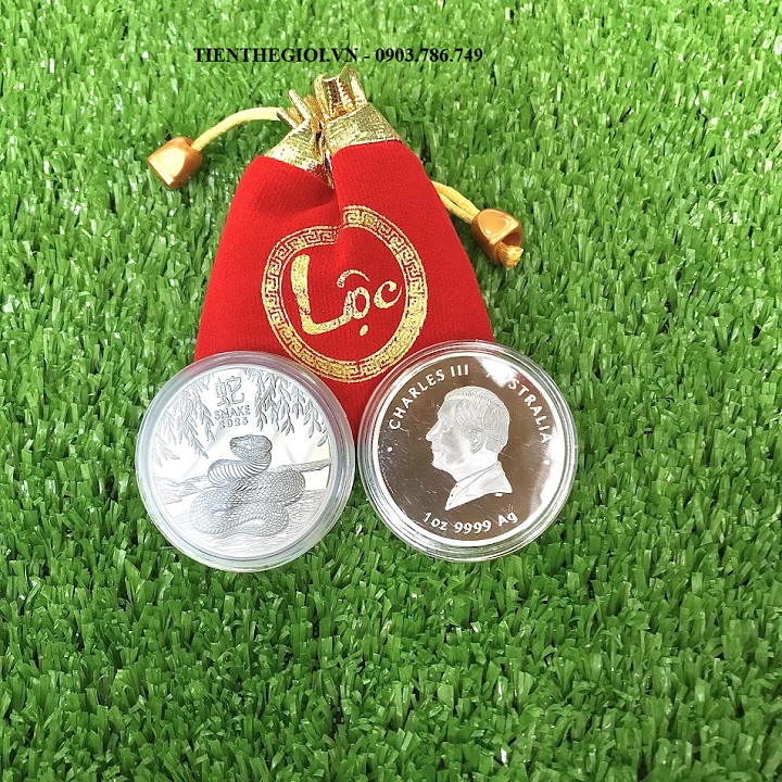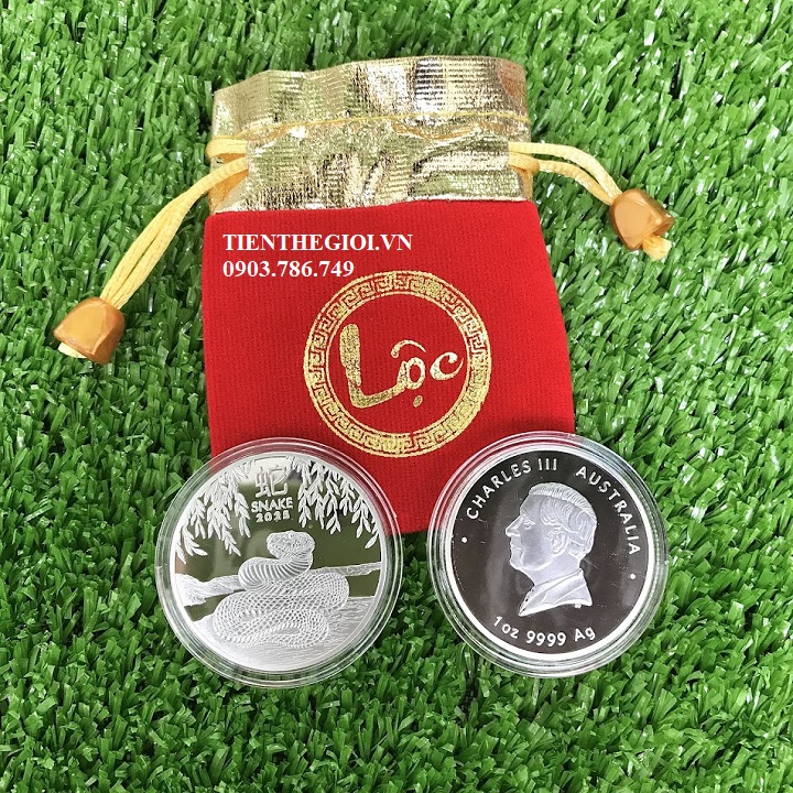 Từ khóa: Xu Con Rắn Vàng Bạc Úc, xu con rắn Úc, xu hình con rắn, Vật phẩm phong thủy, tiền lì xì tết 2025, tiền hình con rắn, Xu Úc Rắn Bạc 2024 kèm Túi Gấm Lộc