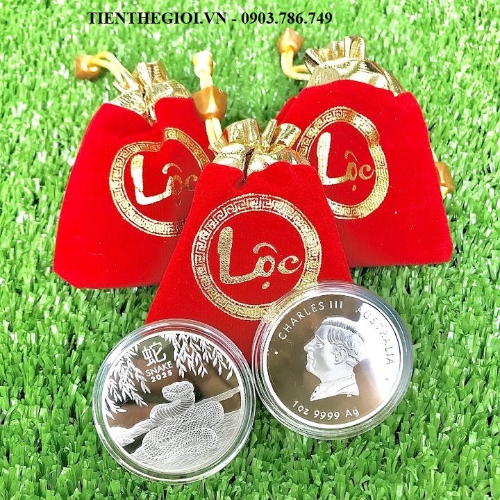 - Đặc điểm nổi bật: Xu Úc Rắn Bạc 2025 kèm Túi Gấm Lộc mang đến ý nghĩa phong thủy tích cực, là lựa chọn tuyệt vời để làm quà trong dịp Tết hoặc những dịp đặc biệt.