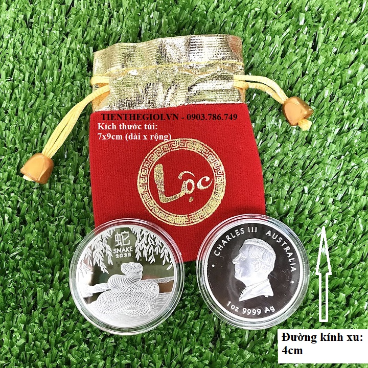 Tên sản phẩm: Xu Úc Hình Con Rắn Mạ Bạc 2025 kèm Túi Gấm Lộc