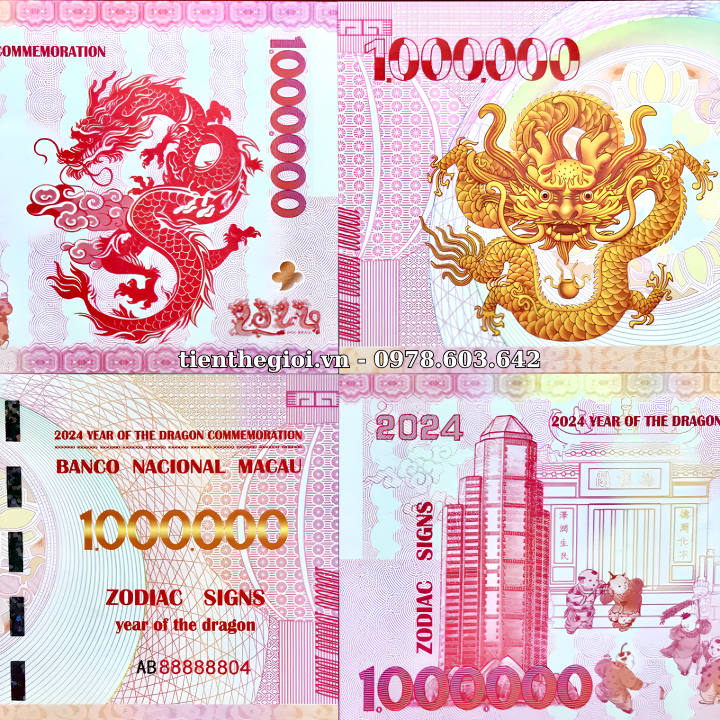 Đóng gói sản phẩm: x 1 Tiền Lì Xì 1 Triệu Dola Macao Hình Con Rồng