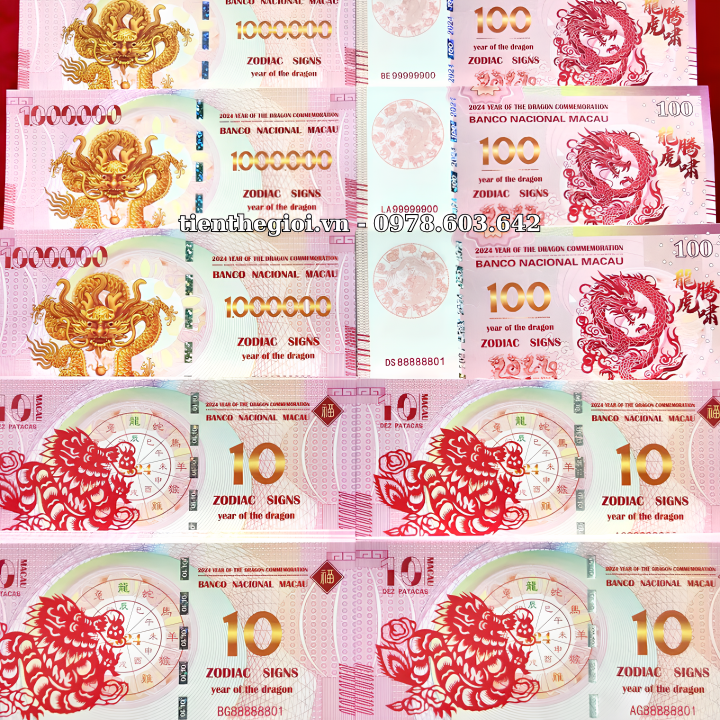 Tiền Macau hình con rồng, Tiền Macau con rồng, Tiền hình con rồng, Tiền con rồng, Tiền Lì xì tết 2024