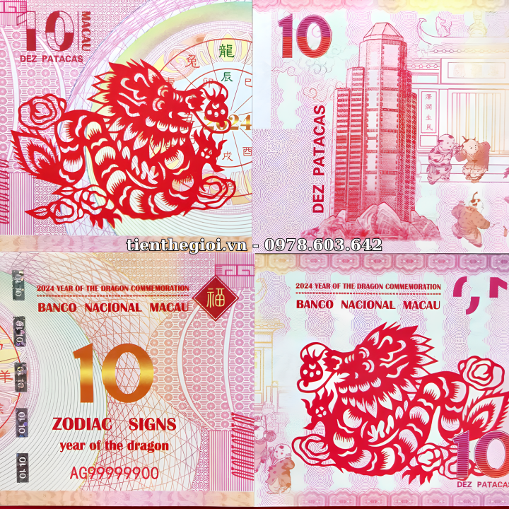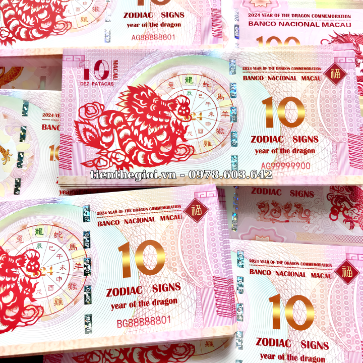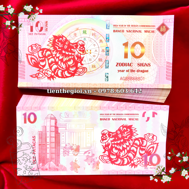 Tiền Macau hình con rồng, Tiền Macau con rồng, Tiền hình con rồng, Tiền con rồng, Tiền Lì xì tết 2024
