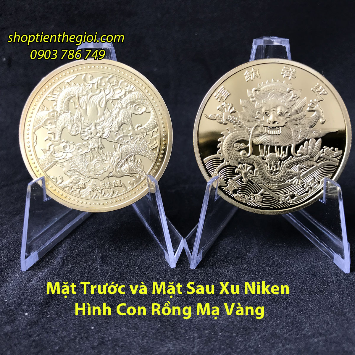Mặt trước và mặt sau Xu Niken Hình Con Rồng Mạ Vàng