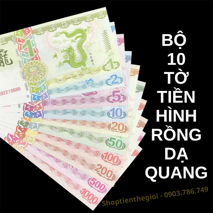 Bộ 10 Tờ Tiền Lưu Niệm Hình Con Rồng Dạ Quang