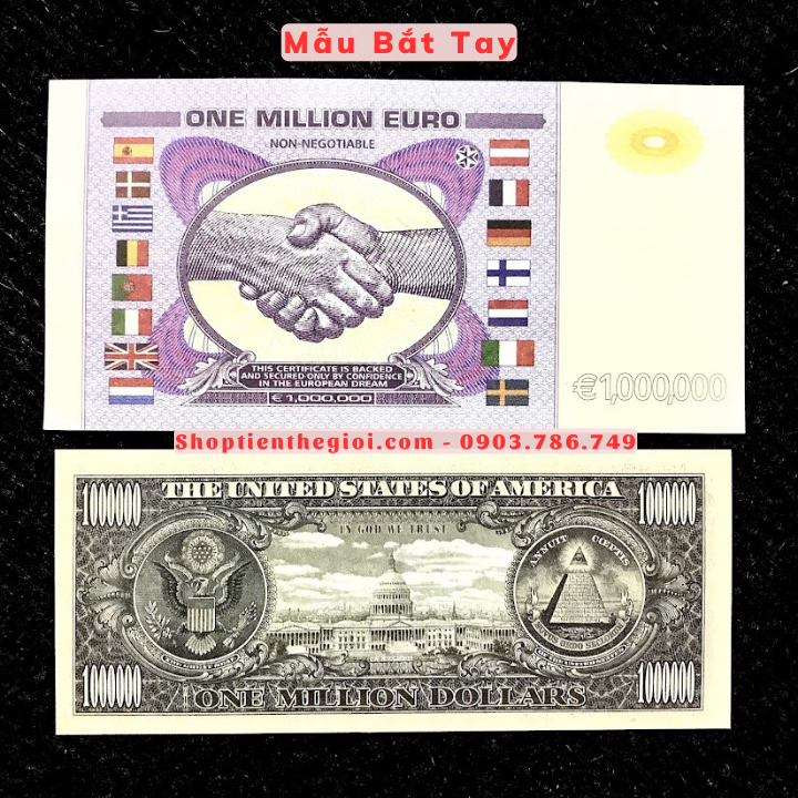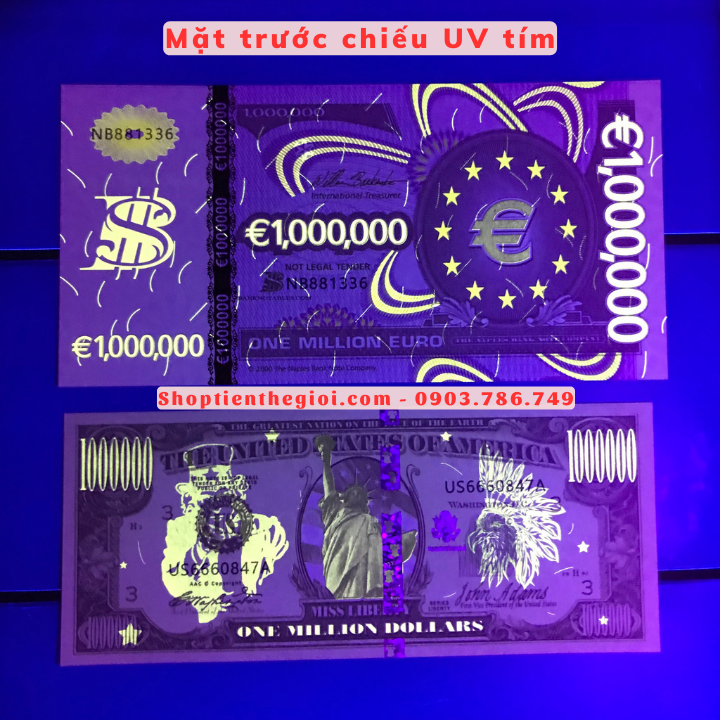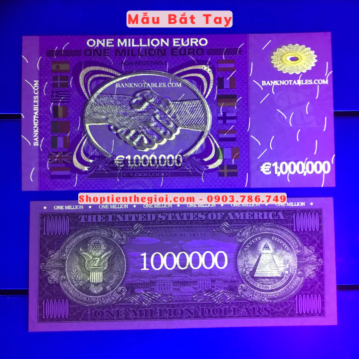 Tên sản phẩm: Cặp Tiền Lưu Niệm 1 Triệu USD Và Euro Dạ Quang