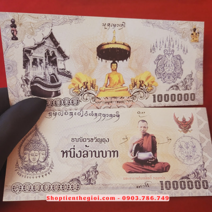 Tên sản phẩm: Tiền Lưu Niệm 1 Triệu Baht Hình Phật Chùa Vàng Và Linh Phù May Mắn Thái Lan