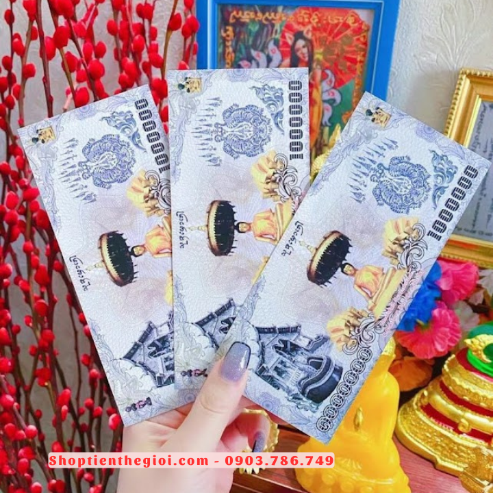 Đặc Điểm Nổi Bật: Tiền Lưu Niệm 1 Triệu Baht Hình Phật Chùa Vàng Và Linh Phù May Mắn Thái Lan có chất liệu giấy. Mặt trước tờ tiền là hình của chùa Wat Traimit, còn có tên tiếng Việt là Chùa Phật Vàng, là một ngôi chùa nổi tiếng ở Bangkok, Thái Lan nhờ vẻ đẹp độc đáo, lịch sử của nó, và nhờ pho tượng Phật bằng vàng nguyên khối rất lớn cùng với 1 hình Linh Phù May Mắn Thái Lan vốn nổi tiếng rất linh thiêng trong tín ngưỡng người Thái. Mặt sau là hình sư Thầy đang kiết già khất thực, hình Phật 3 đầu. Nên tờ tiền rất phù hợp để trong túi, sau ốp lưng điện thoại, bàn làm việc...để cầu mong được nhiều may mắn, tránh tai ương. Tiền cũng rất thích hợp làm quà tặng cho người thân, bạn bè.