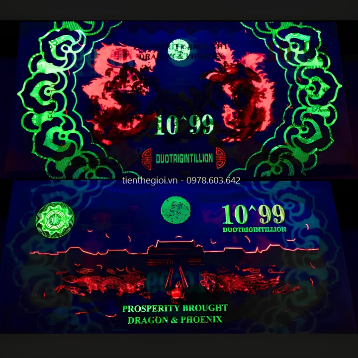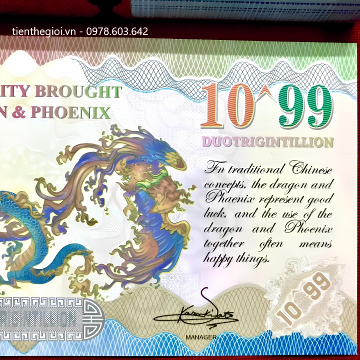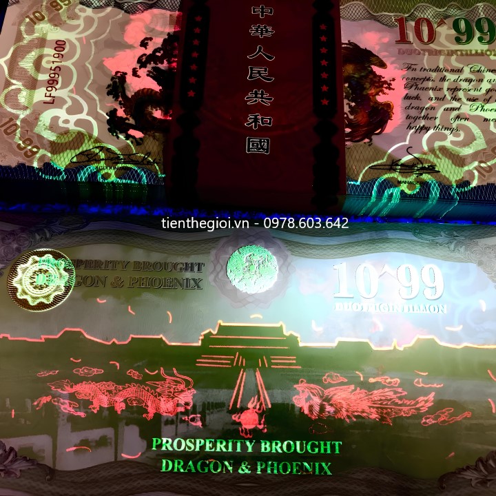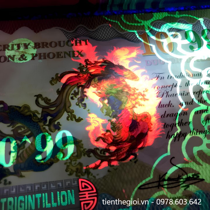 Tiền Lưu Niệm 10^99 Hình Long Phụng