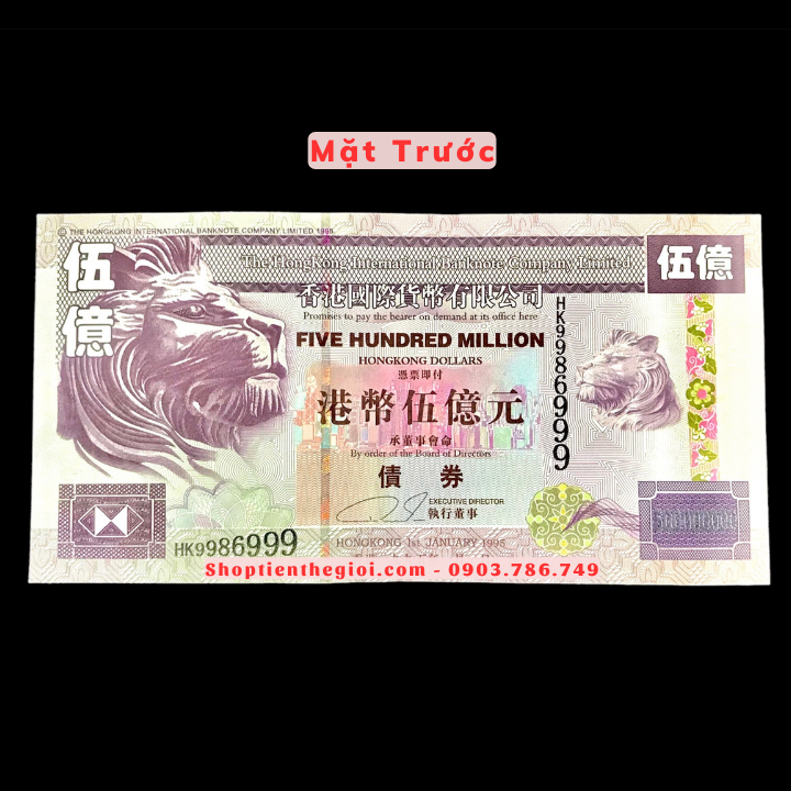 Tên sản phẩm: Tiền Lưu Niệm 500 Triệu Dola Hong Kong Hình Sư Tử