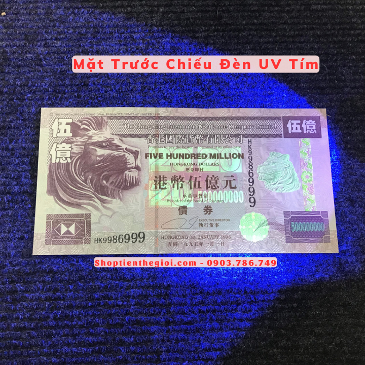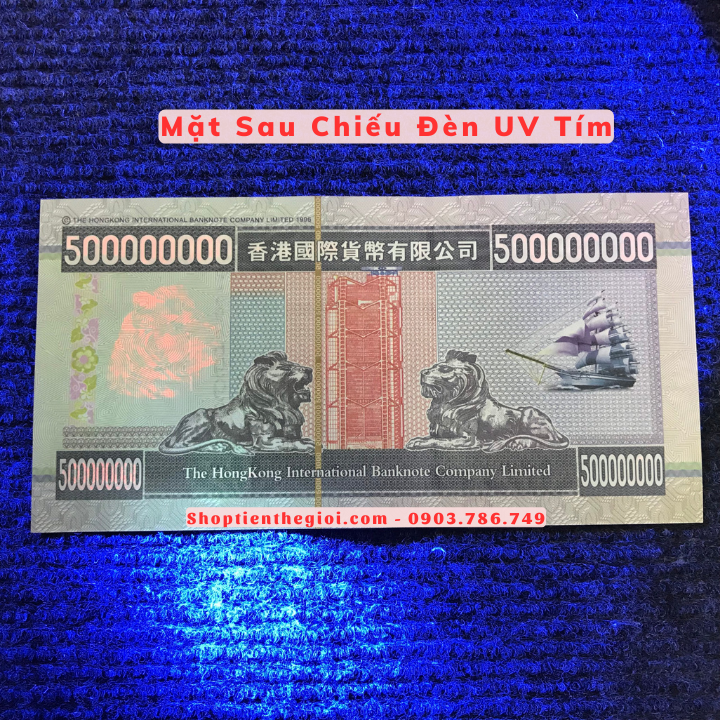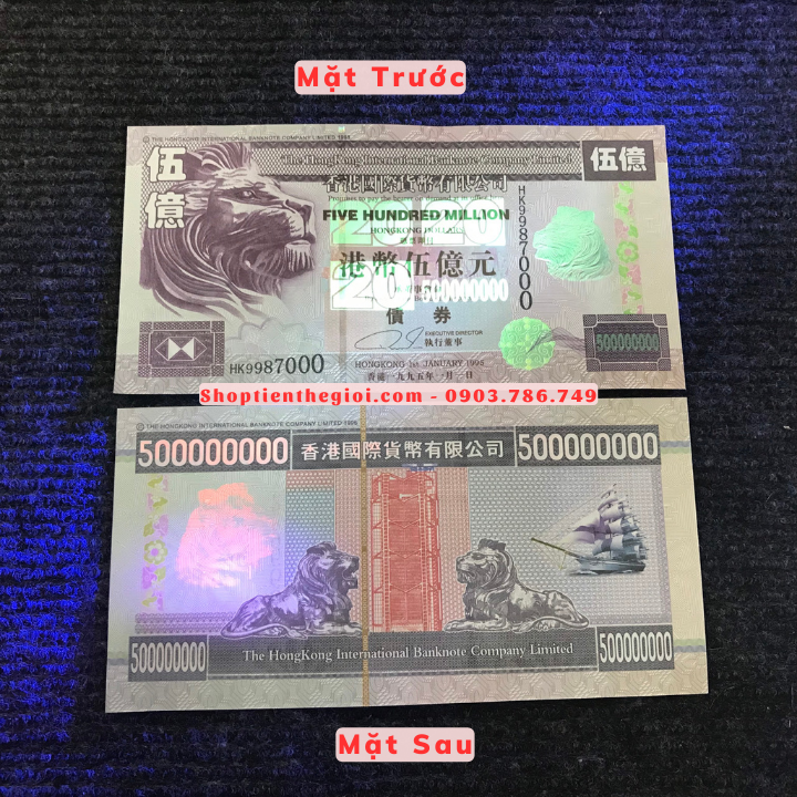 Đặc Điểm Nổi Bật: Tiền Lưu Niệm 500 Triệu Dola Hong Kong Hình Sư Tử với chất liệu giấy. Mặt trước là hình Đầu Sư Tử, mặt sau là hình ngân hàng Hong Kong. Tờ tiền có mệnh giá khủng 500 triệu Dola, như một sự cầu may cho tài lộc và may mắn sẽ đến với người sở hữu. Tờ tiền có phát quang dưới tia UV tím, sẽ hiện lên những hình ảnh in chìm thú vị.