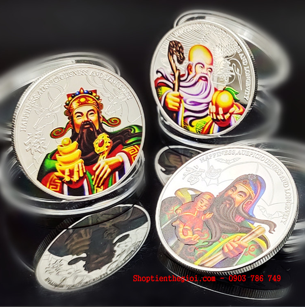 - Bộ 3 Xu Lưu Niệm "Phước Lộc Thọ" là một món quà phong thủy vô cùng ý nghĩa đối với gia đình, người thân hay bạn bè được tặng. Mặt trước mỗi xu là một ông thần đều :