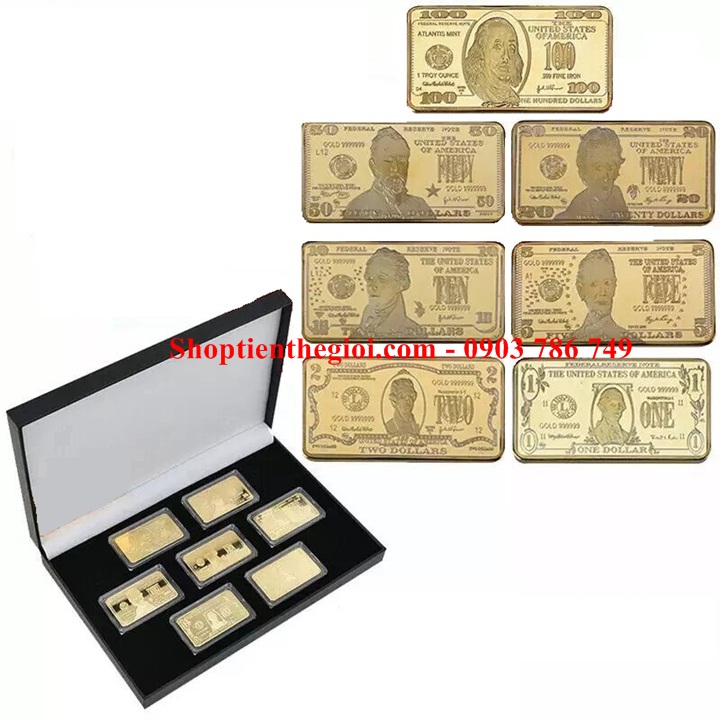 - Hộp quà tặng medal vàng 7 mệnh giá 1-100 dollars Mỹ