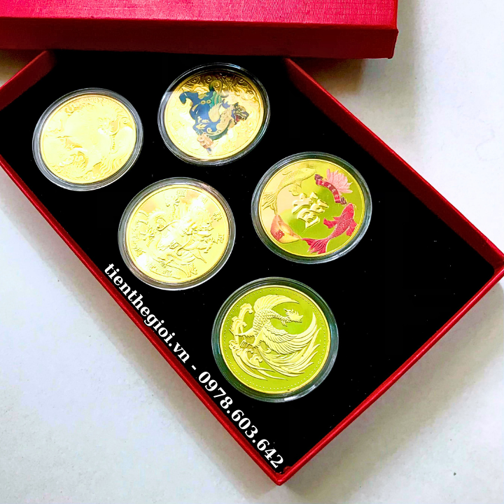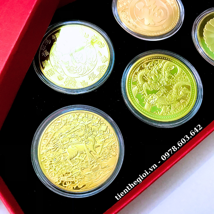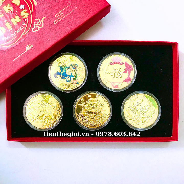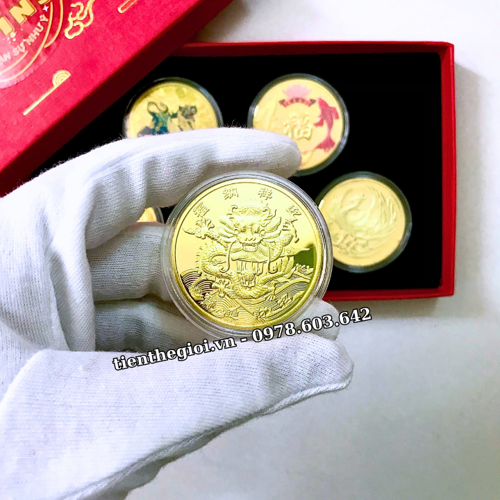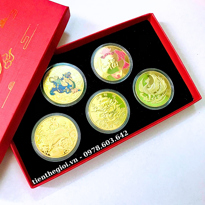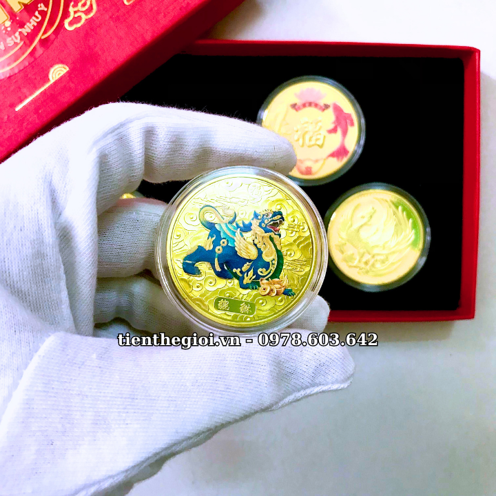 Đặc Điểm Nổi Bật: Bộ xu mang nhiều ý nghĩa theo phong thủy, đem đến may mắn về tài lộc, sức khỏe, công danh sự nghiệp, trấn trạch trừ tà khí, bảo vệ sự bình yên cho ngôi nhà. Kỳ Lân là con vật báo hiệu điềm lành sắp đến, sự trường thọ và niềm hạnh phúc lớn lao; Rồng được tượng trưng cho vận may và là biểu tượng của sức mạnh và uy quyền, địa vị; Hình con Phượng Hoàng đang vươn cánh, biểu tượng cho sự tái sinh, trí tuệ và ánh sáng; Tỳ Hưu có tác dụng xua đuổi tà khí và mang lại sự may mắn, tài lộc và bình an cho gia chủ; …Bộ xu rất thích hợp để làm quà tặng độc đáo, ý nghĩa cho người thân, bạn bè dịp lễ, tết, tân gia,...